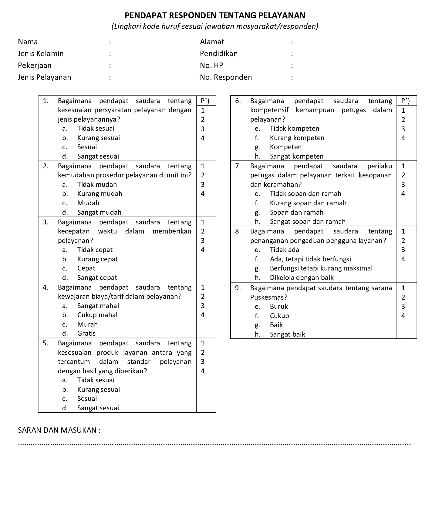 KUESIONER SKM | Puskesmas Sungai Buluh